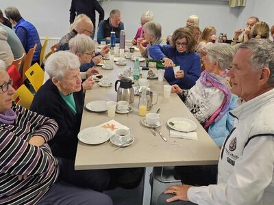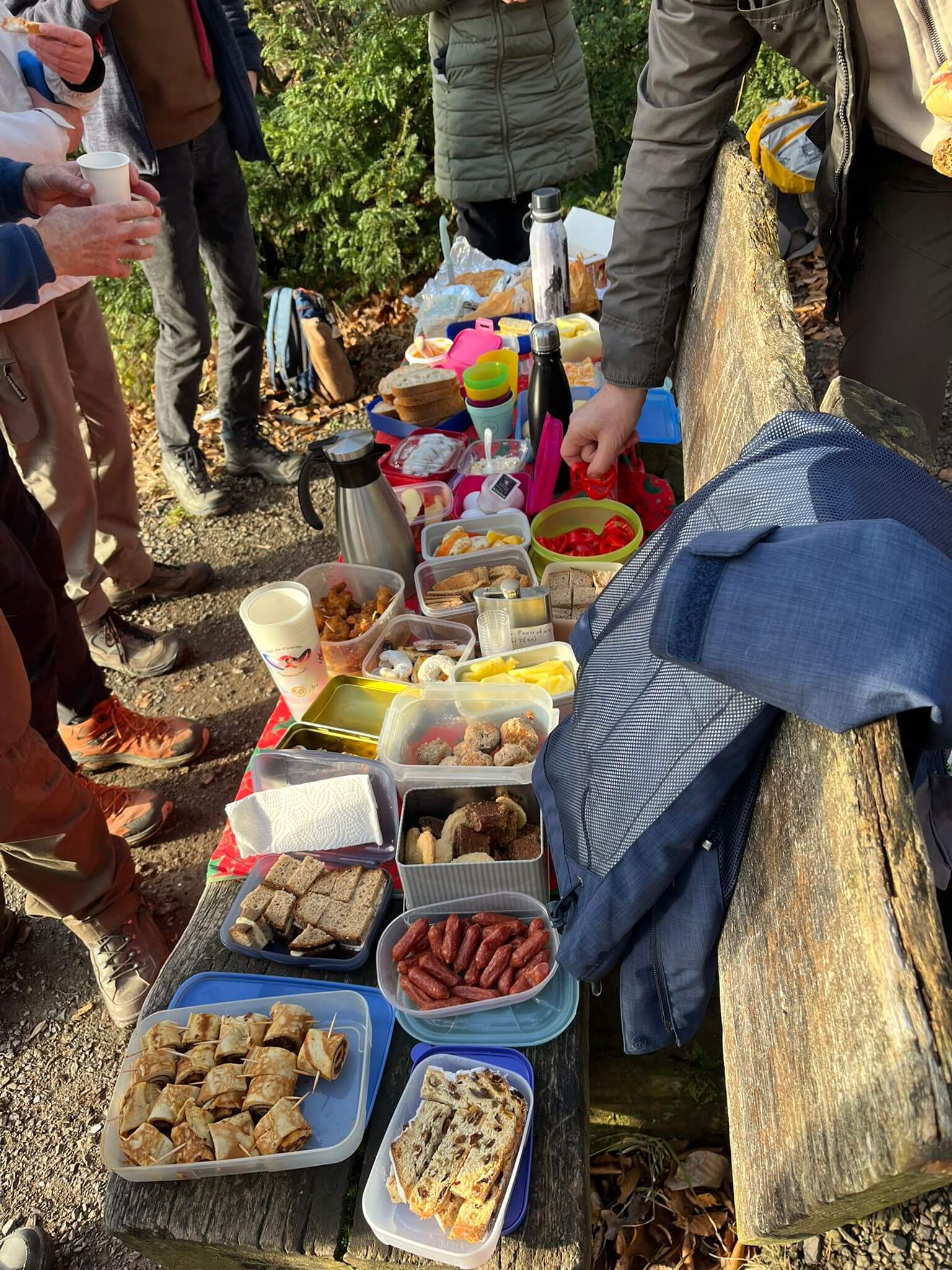 Vom Lindlarer Marktplatz pilgerten wir gespräch- und appetitanregend, gut gelaunt und erwartungsvoll auf einigen Umwegen hinauf zur Jugendherberge. 4,5Km/100Hm vor dem letzten SGV-Buffet 2025 machten ebenso warm wie Spaß!
