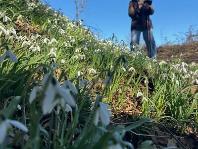 Am Hermannsberg wurde geparkt, und von dort ging es gemütlich durch die Marienheider Schlade. Schon am Wegesrand leuchteten die ersten Krokusse und die allgegenwärtigen Schneeglöckchen. Dazwischen strahlten Winterlinge wie kleine Sonnen aus dem noch kühlen Boden. Dieses vorsichtige Frühlingserwachen hatte etwas Tröstliches – nicht laut, nicht aufdringlich, sondern einfach da.