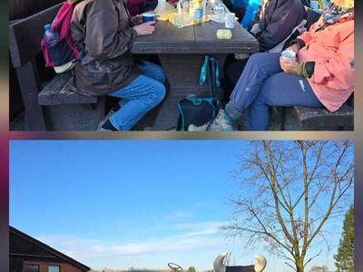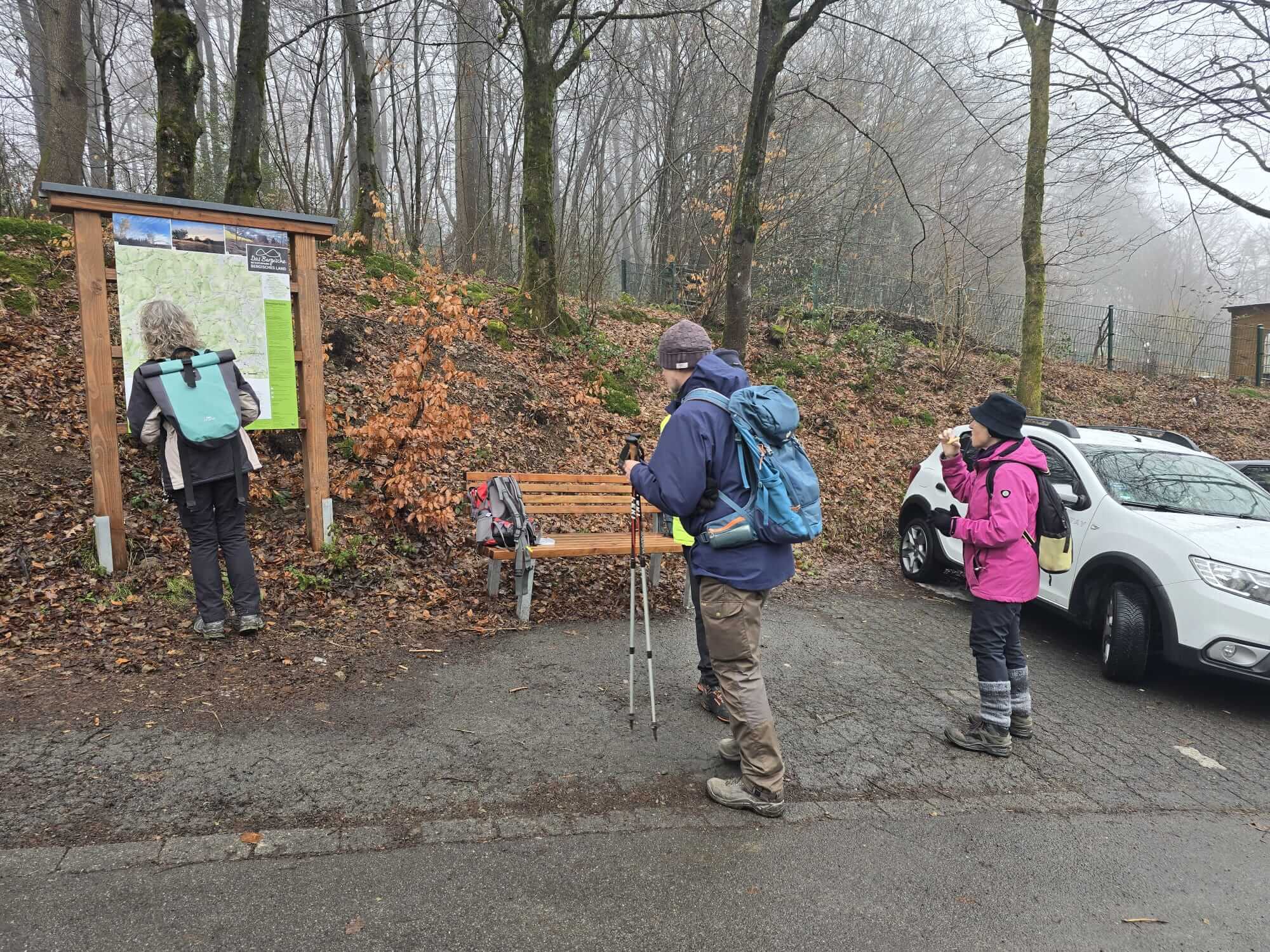 Pünktlich um 10 Uhr fanden sich 5 unerschrockene Wandersleute auf dem Parkplatz beim Friedhof Berghausen ein. Die Wettervorhersage hatte zwar Regen angekündigt, aber echte Wanderer lassen sich davon bekanntlich nicht beeindrucken.😉.Nach einem kleinen, leichten Anstieg erreichten wir den Berghauser Rundweg. Dort warteten bereits mehrere Fitnessgeräte auf uns, die natürlich nicht ignoriert werden konnten – kurze sportliche Einlagen inklusive 💪😄.Am Aussichtspunkt Nordhelle (390 m) wurden wir von Nebelschwaden empfangen. Trotzdem konnten wir einen schönen Blick auf Erlinghagen erhaschen – ein bisschen mystisch, aber sehr stimmungsvoll. Der breite Wanderweg zeigte sich teilweise vereist, sodass wir bald elegant (oder eher watschelnd 🦆) über den matschigen Wegesrand ausweichen mussten. In Wegescheid legten wir unsere erste Trinkpause ein und stärkten uns, bevor es zurück auf den Rundweg ging. Ab hier waren die Wege wieder eisfrei – sehr zur Freude unserer Schuhe. Links grüßte Obergelpe, kurz darauf auch Hülsenbusch.