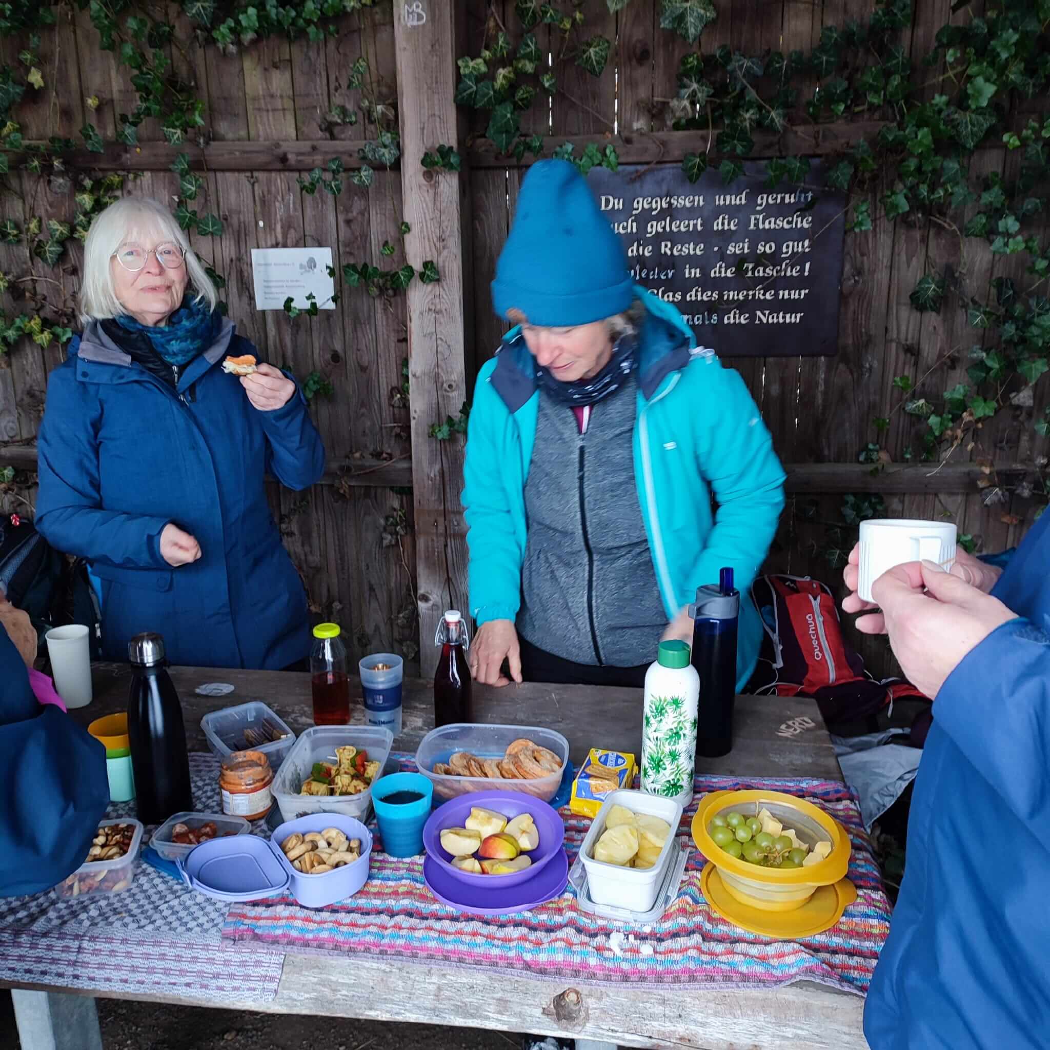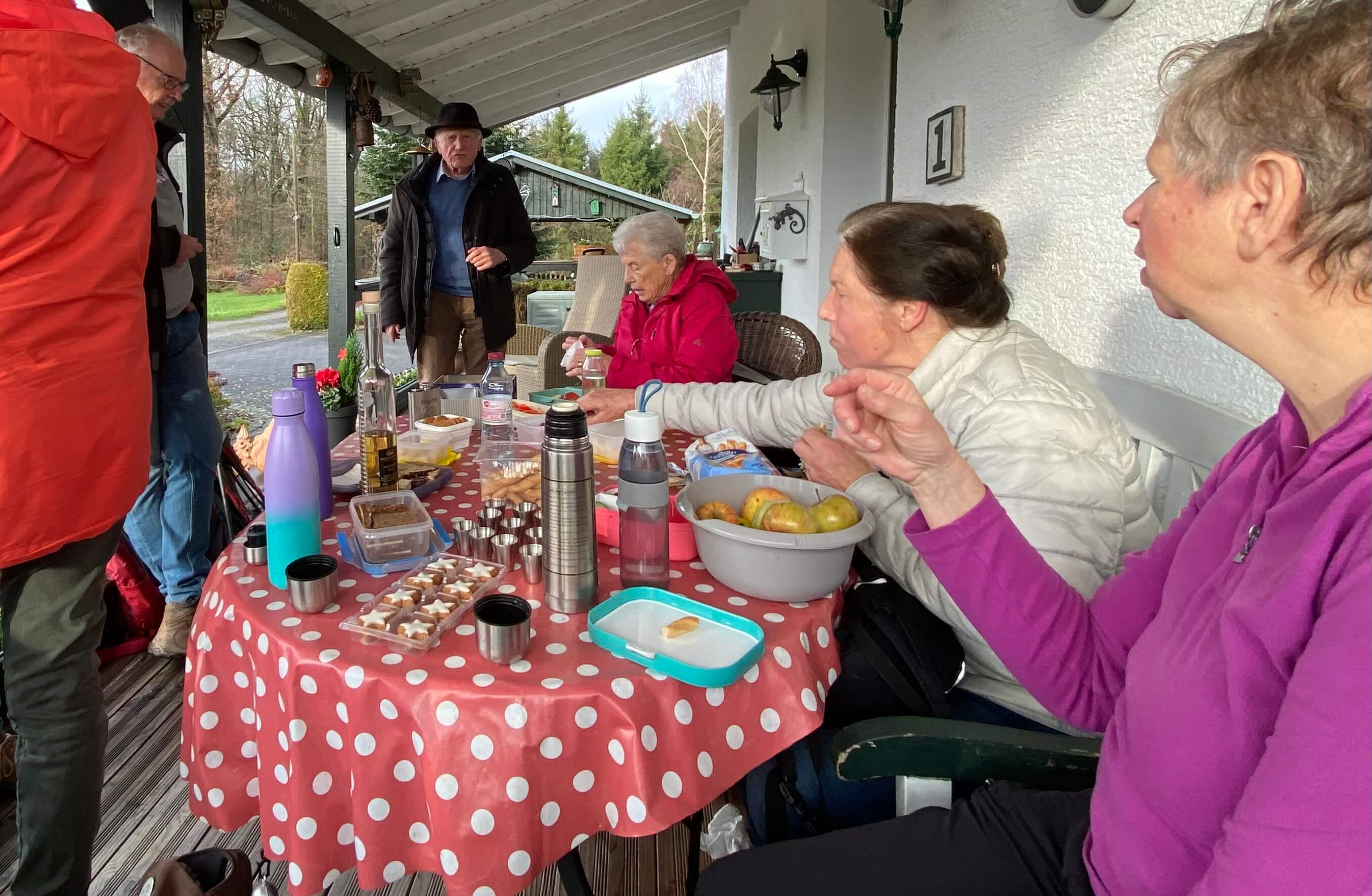 Auf der Hälfte spendierten die beiden Wanderführer Norbert und Regina Kaffee und selbstgebackene Kekse.