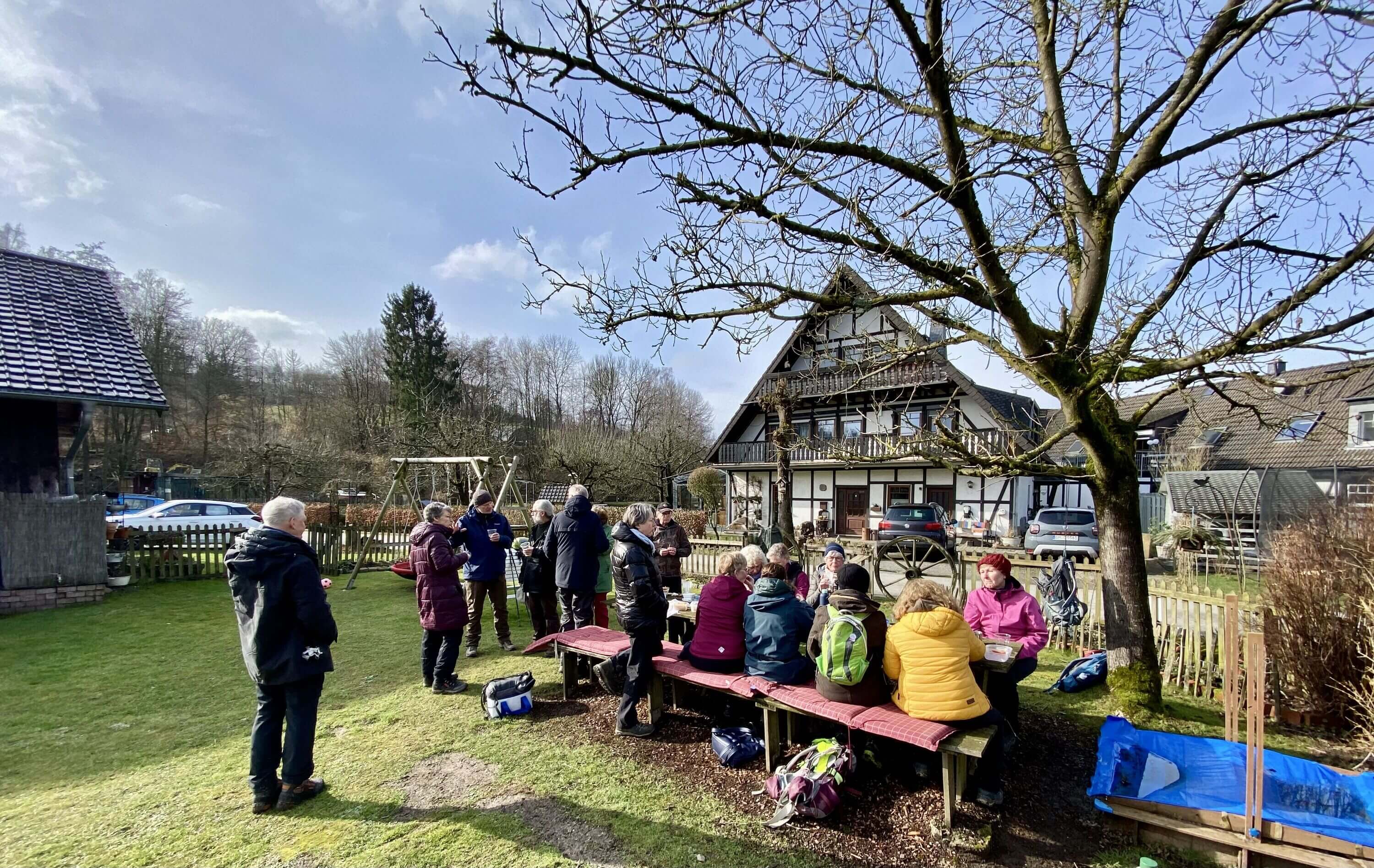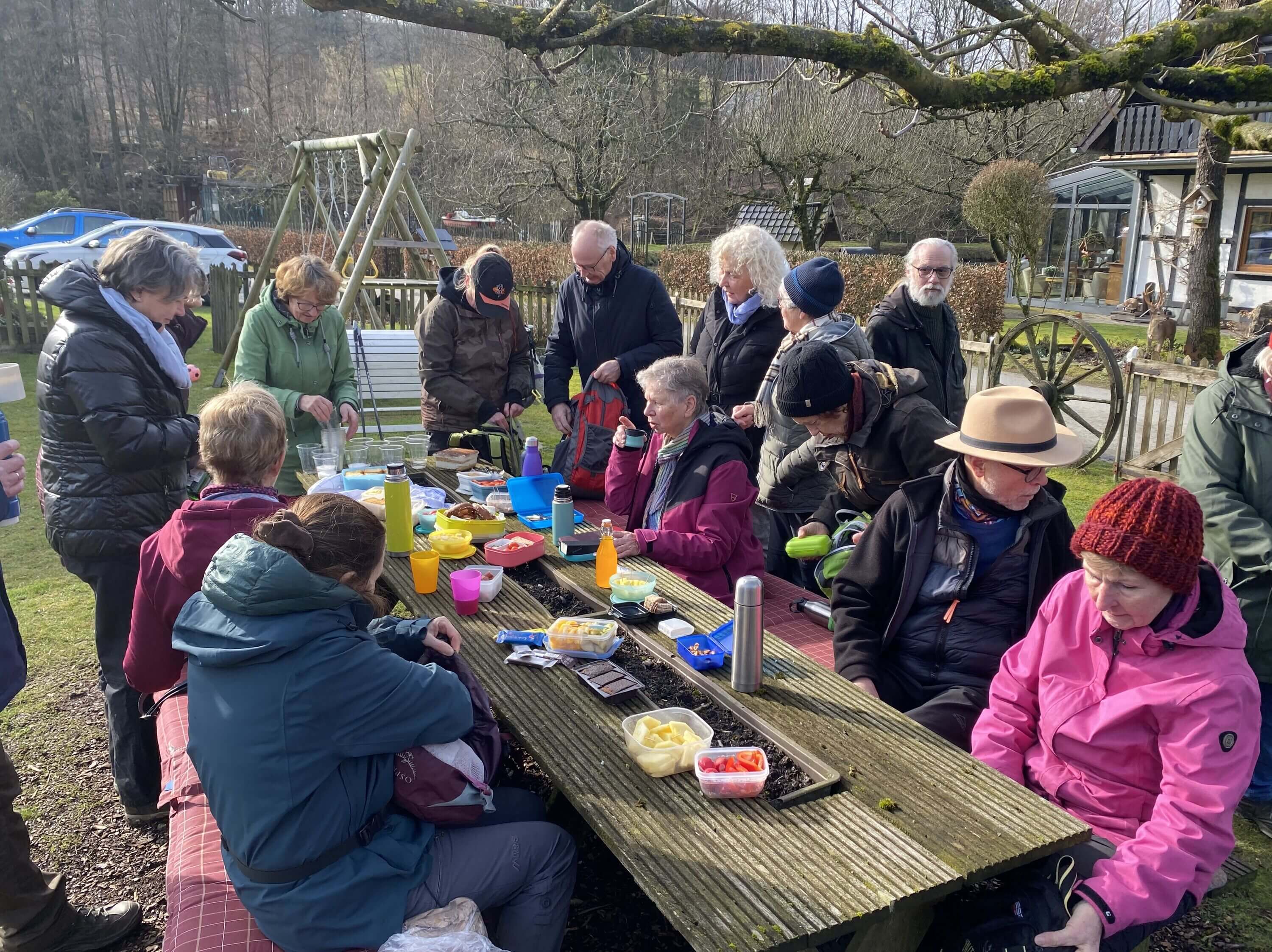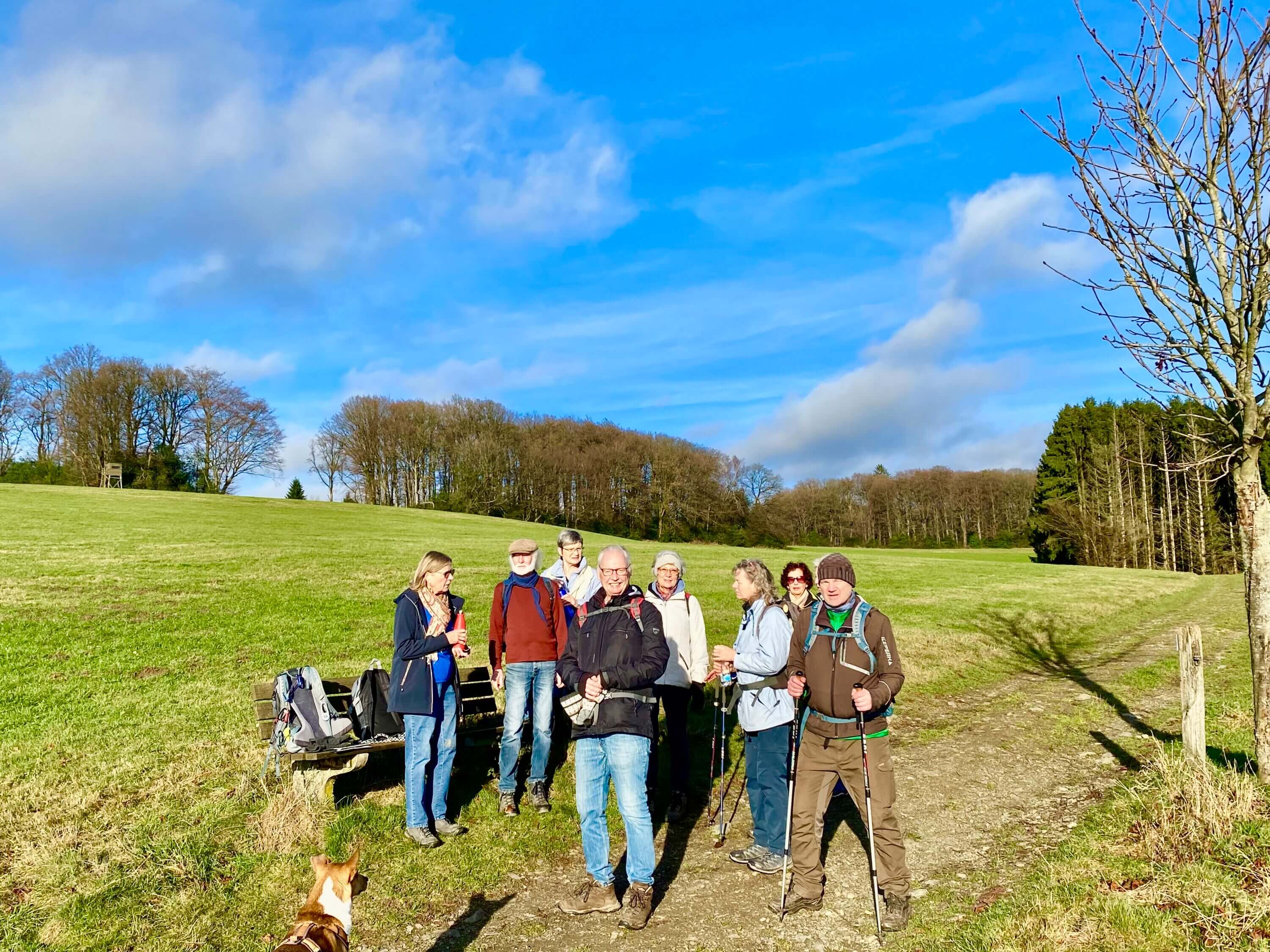 Zu dieser abwechslungsreichen, fröhlichen, moderat sportlichen und am Ende durchaus Kalorienträchtigen Wanderung hatte Ingrid die Wanderfreund*nn von SGV und Senioren-Pfadfindern eingeladen. Quasi zu sich nach Hause.