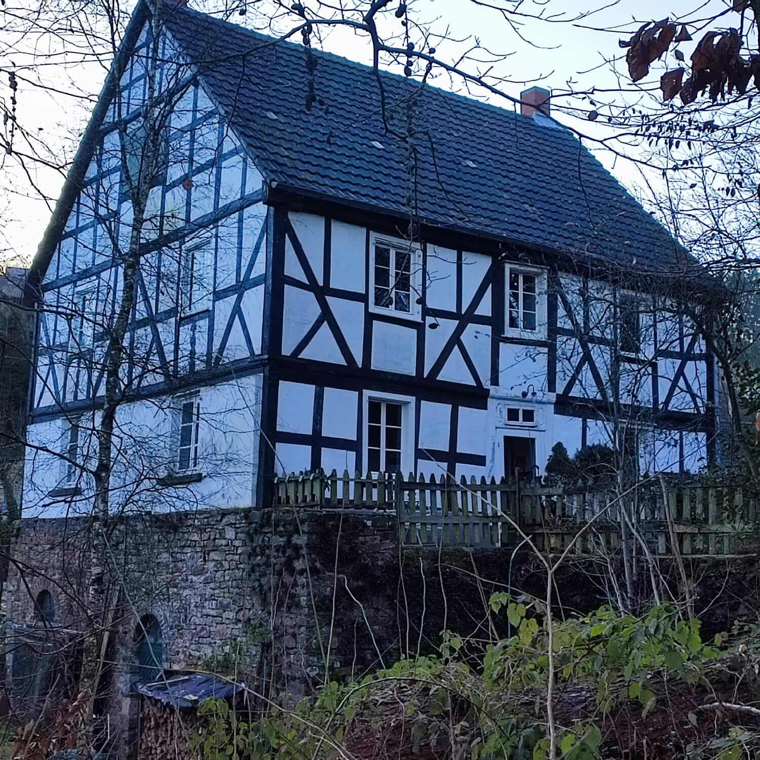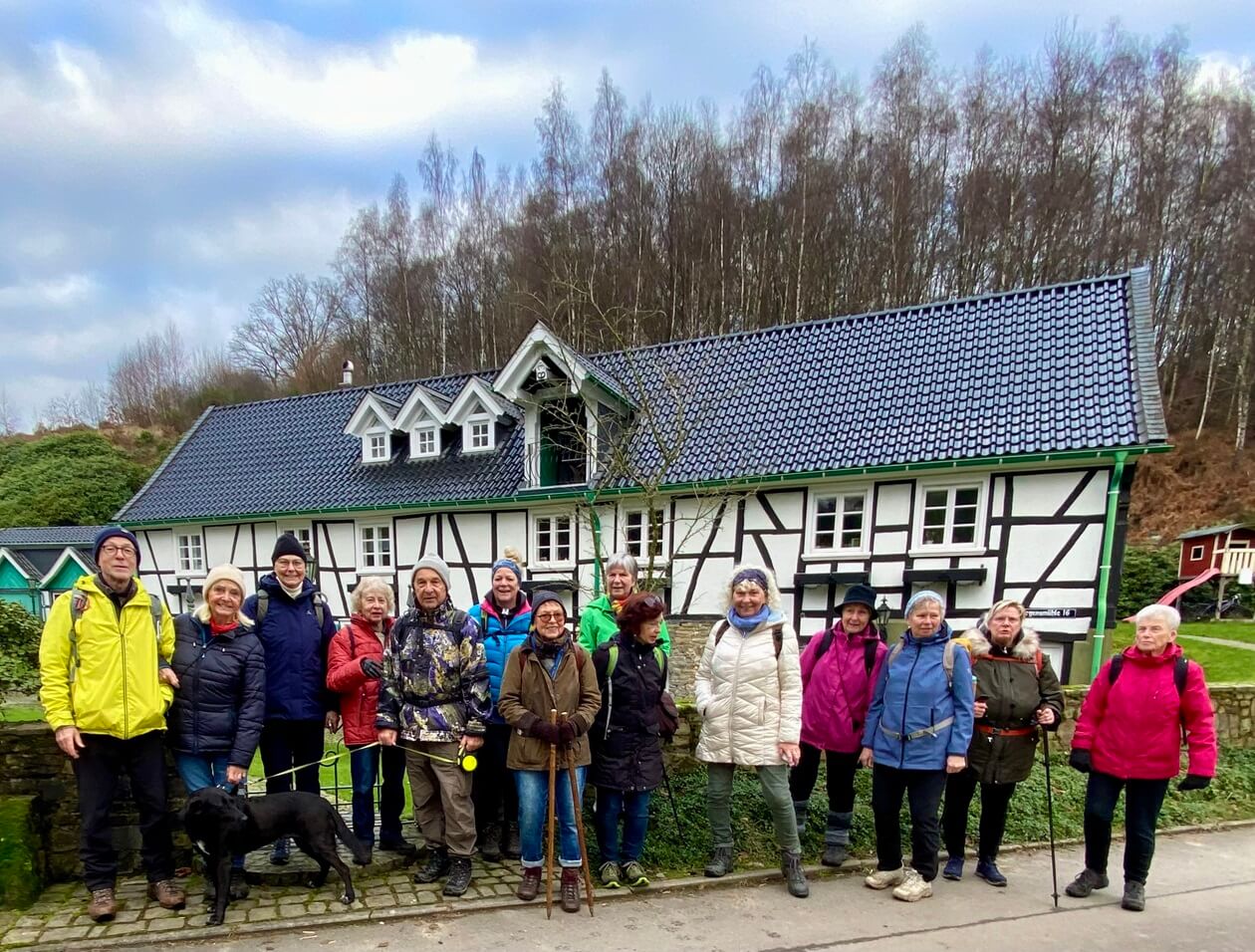 Der erste Teil unserer vorweihnachtlichen Wanderung führte von Gerhardsfeld durch das schöne Wiesental der Kürtener Sülz nach Jörgensmühle. Gruppenfoto vor dem liebevoll restaurierten historischen Mühlengbäude.