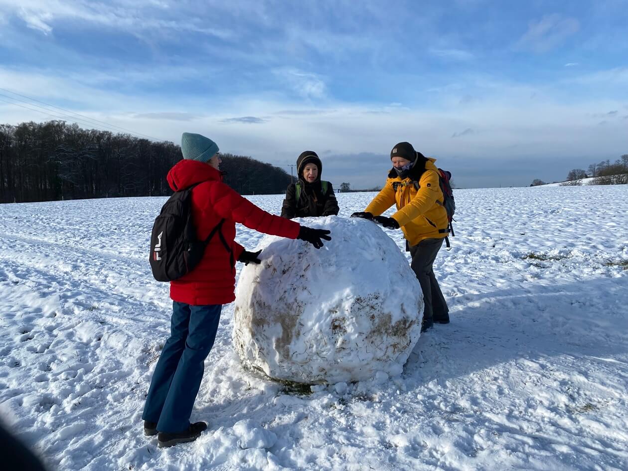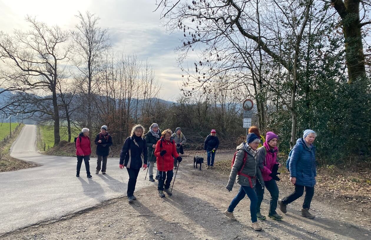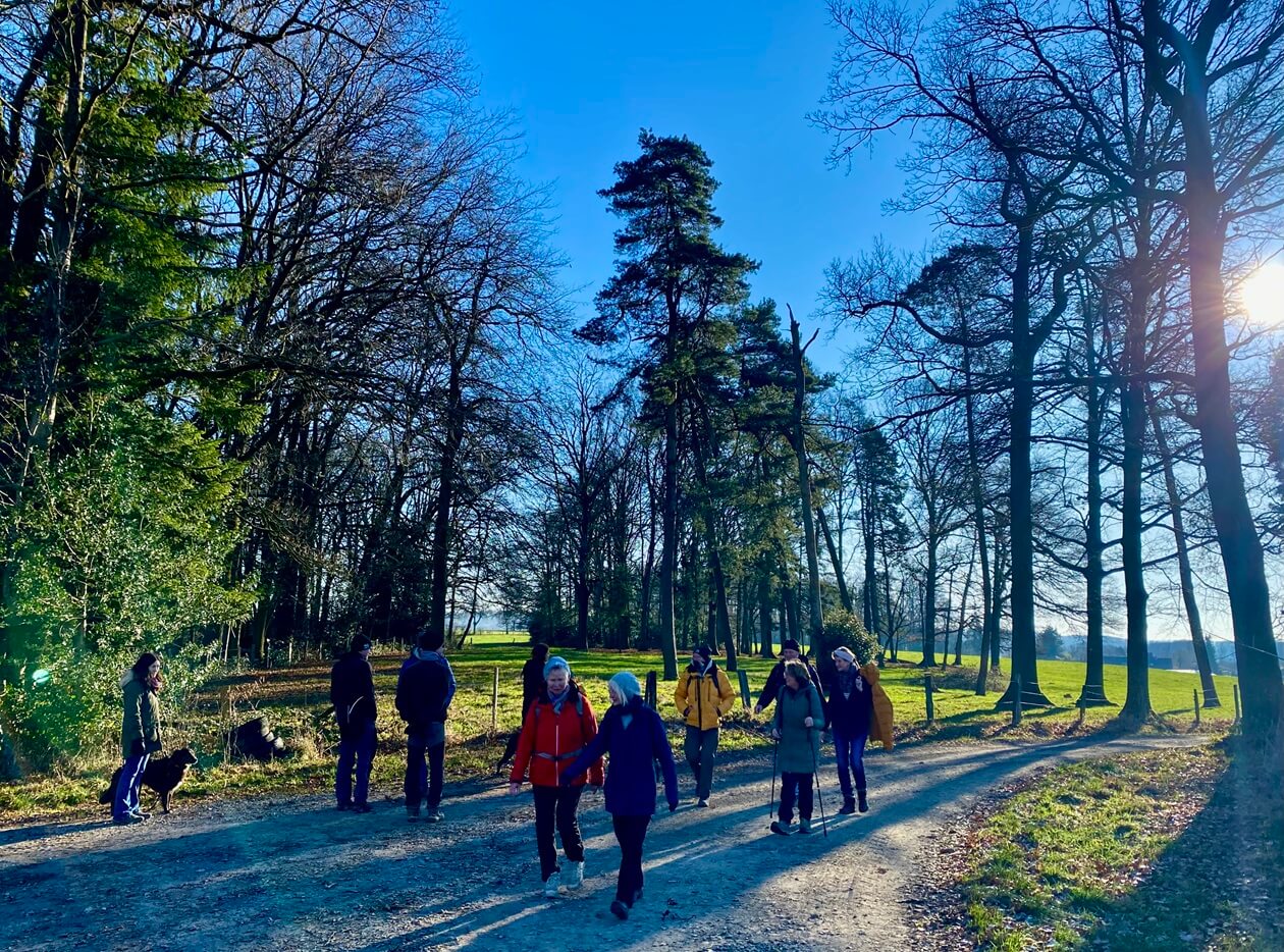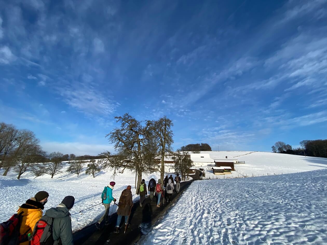 Ab sofort Tradition? Ganz ohne Weihnachts-Blues folgten 15 gut eingemummelte Wander*innen der Einladung zur Wanderung am 2. Weihnachtsfeiertag. Frostige Temperaturen, ein blitzblauer Himmel mit strahlender, wenn auch tief stehender Sonne bildeten den perfekten Rahmen für unsere genußvolle Winter-Wanderung.