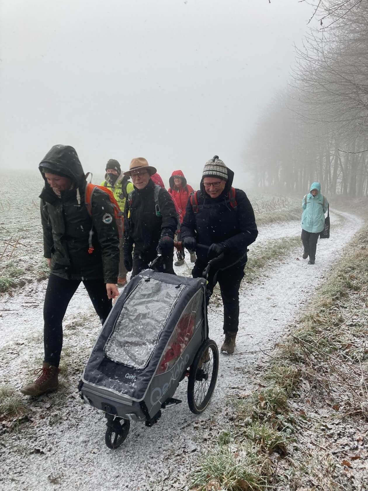 Dick eingepackt ging es pünktlich um 10:00 Uhr ab dem Marktplatz in Lindlar los.