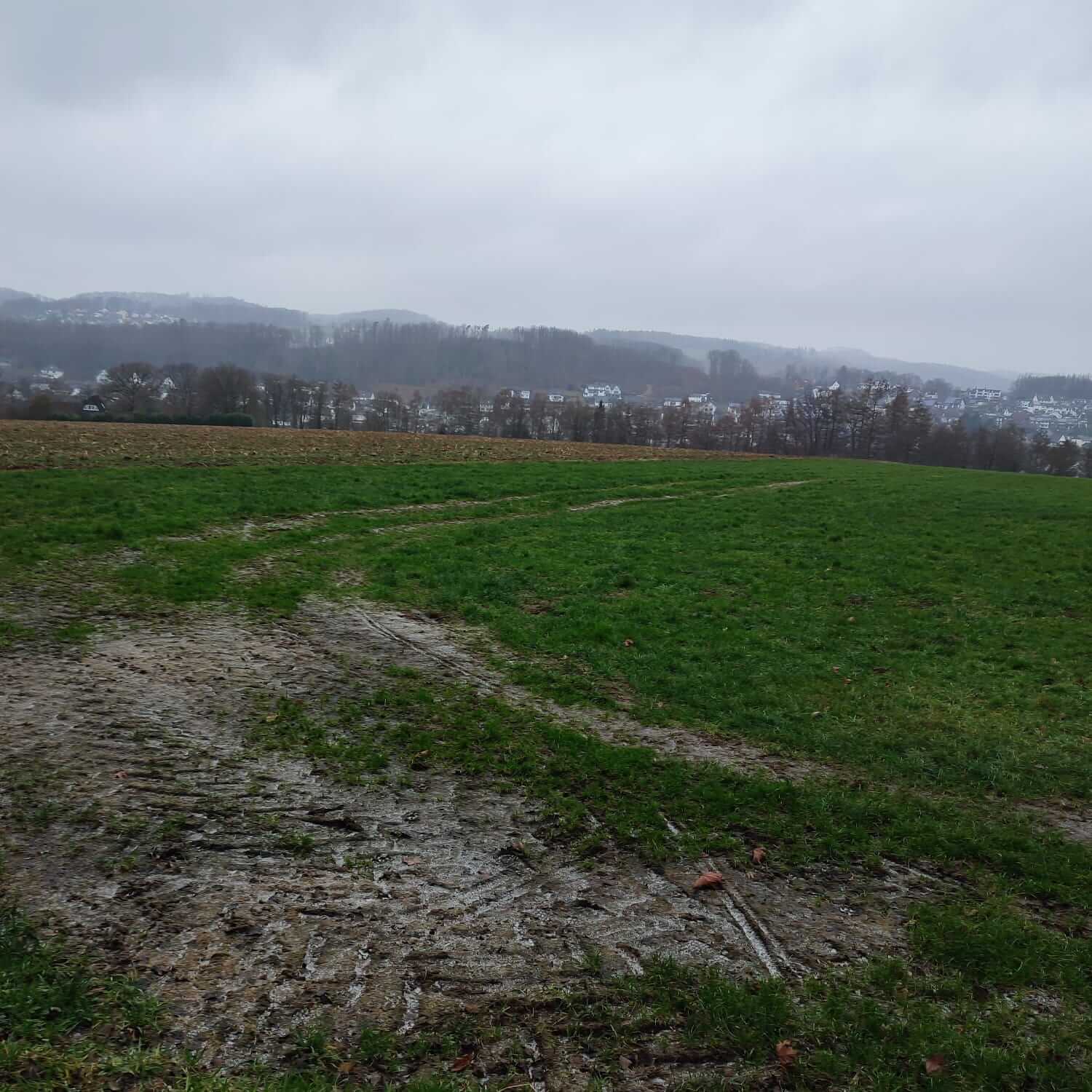 So ging es vom Schlossplatz ein Stück der Lennefe entlang und dann links hoch auf Pfaden über den Steimel- mit einem schönen Blick auf Lindlar- wieder abwärts nach Voßbruch. Auf freien Feldwegen und ohne die erhoffte Sonne führt uns die Wanderung über Bolzenbach nach Altenrath.