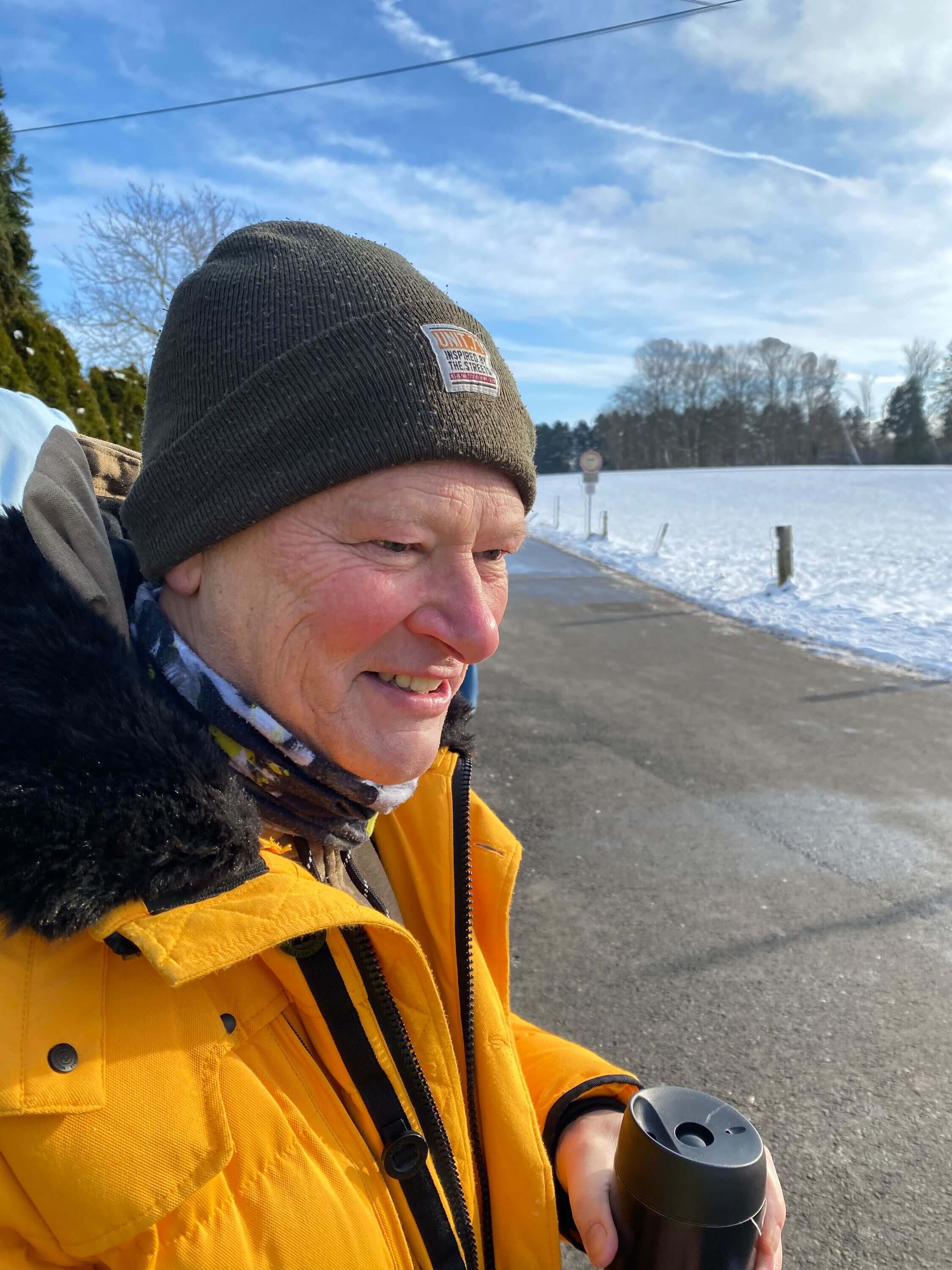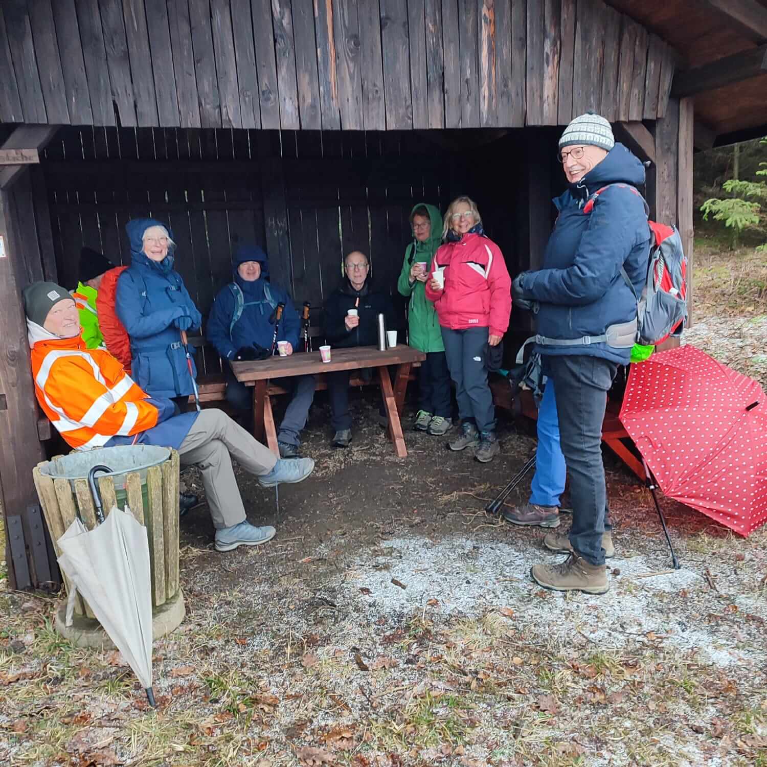 Nach einer Weile kam eine Wanderhütte in Sicht und Lothar überraschte uns mit heißem Glühwein. Genau das richtige bei dem Wetter.