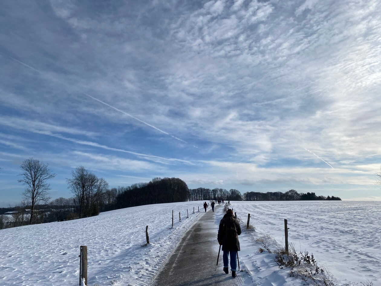 Für einige folgte nach dem SGV-Sylvesterbuffet noch der standesgemäße allerletzte Teil des Wanderjahres. 14 Unentwegte freuten sich noch an einer hübschen, ganz winterlichen Runde über Altenrath, Oberschümmerich, Vossbruch und dem Freizeitpark zurück zum Marktplatz.