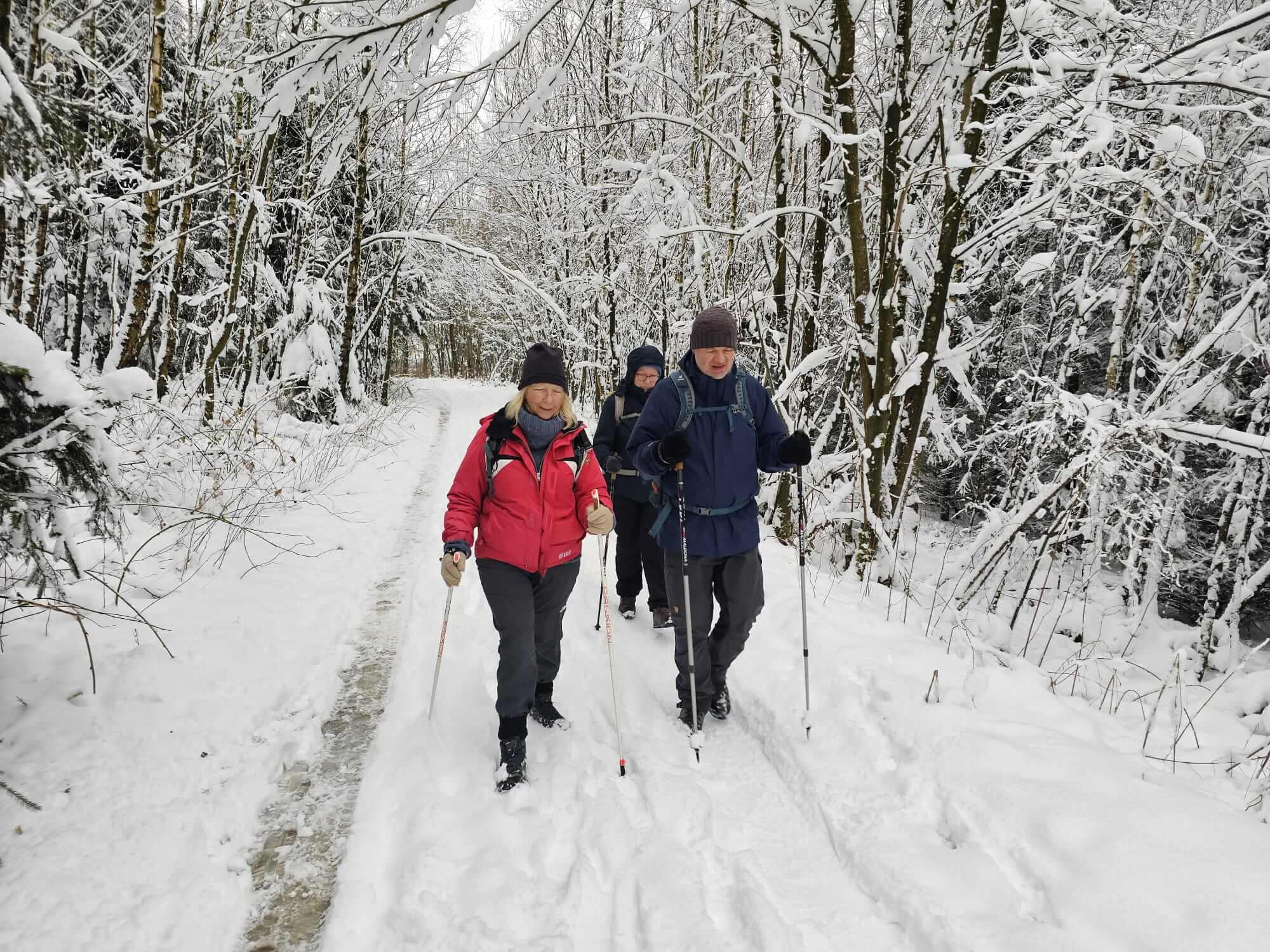 Mal wieder ein perfekter Wintertag: sonnig, kalt, still im Wald – und zugleich lebendig durch die fröhliche Gemeinschaft der Wanderer, die diesen Augenblick in vollen Zügen auskosten. ❄️☀️🥾