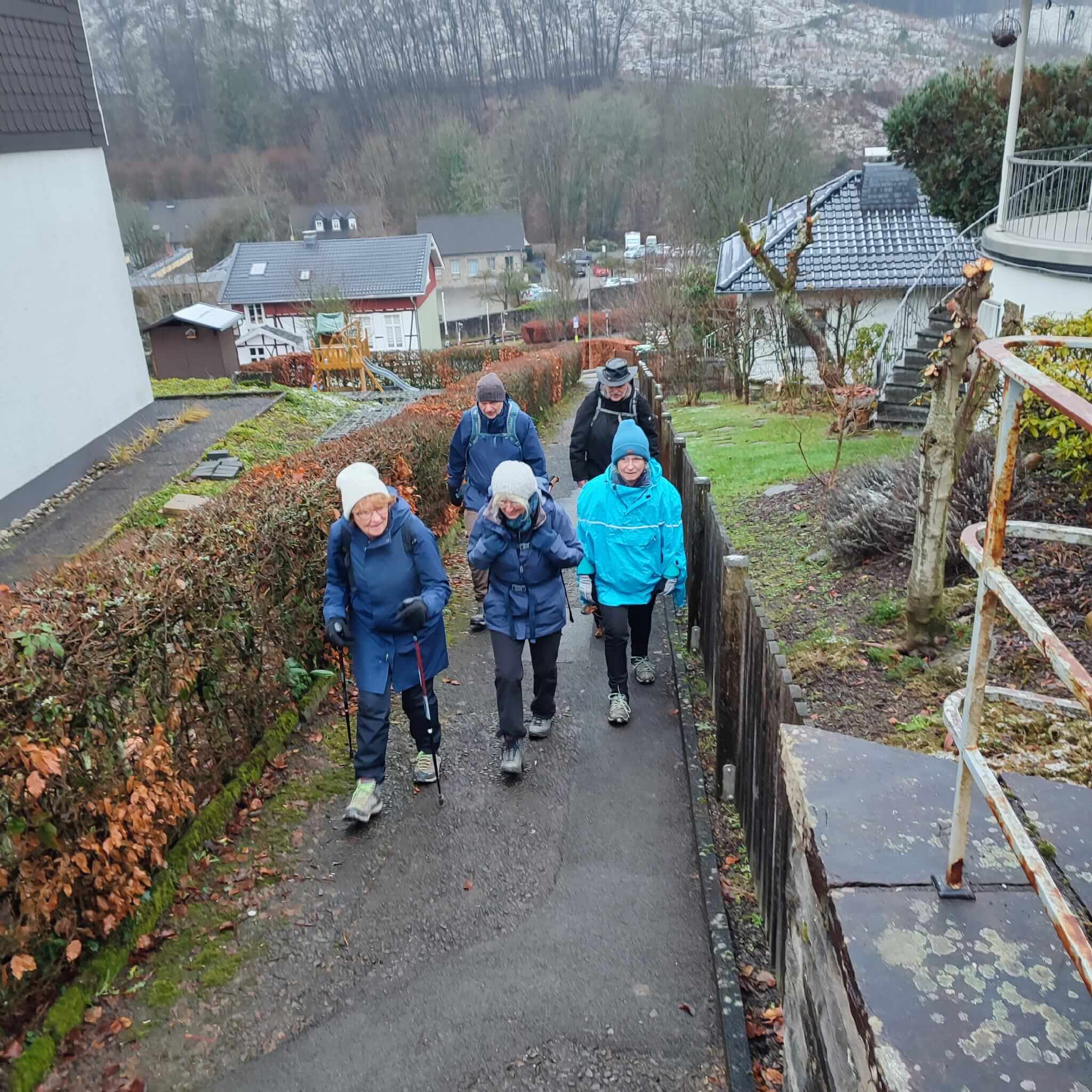 Heute liegen gleich mehrere Anstiege vor uns,. Gleich zum Anfang ging steig bergauf über Treppen nach Engelskirchen Hardt.
