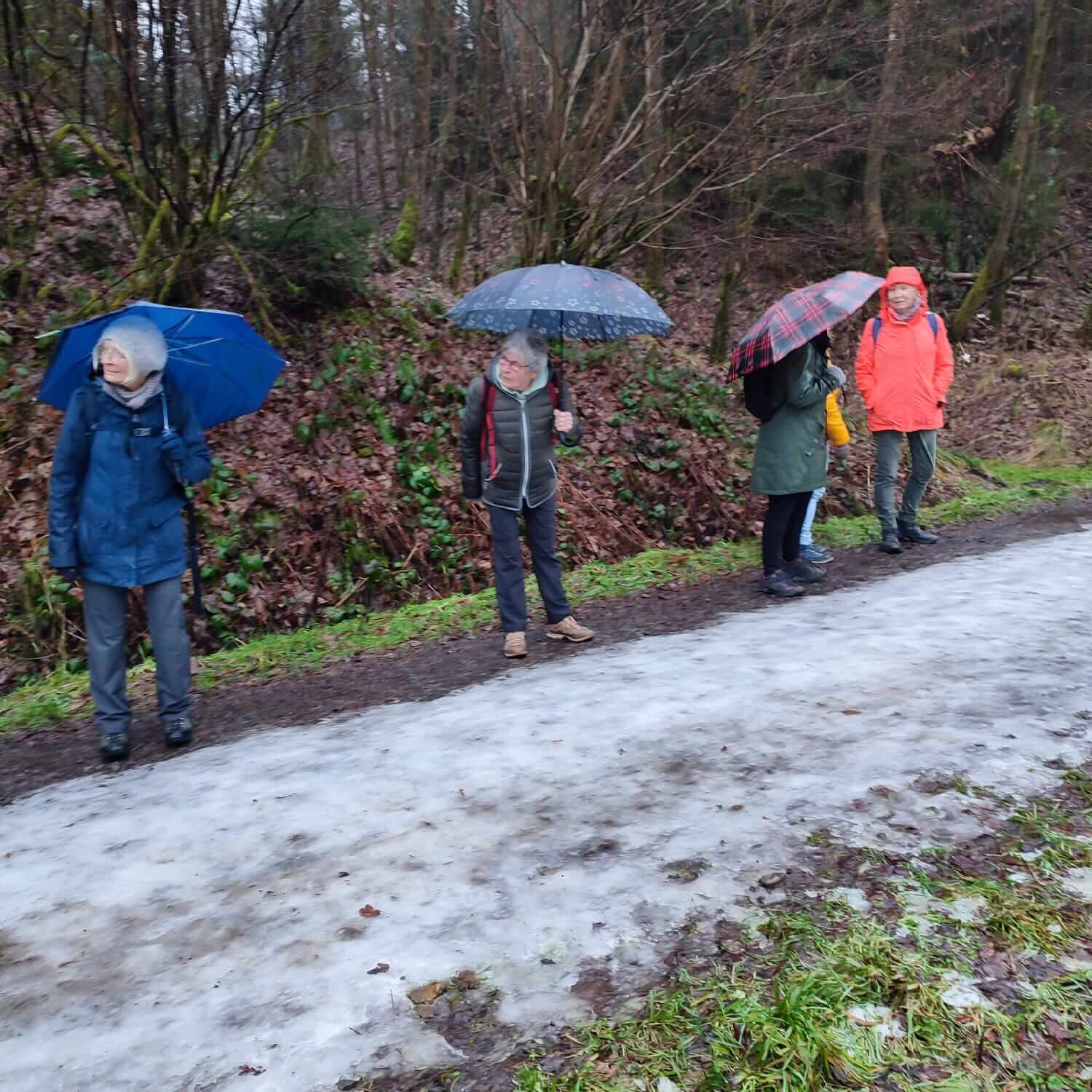 Heute machten sich 15 SGV-ler auf den Weg rund um Bickenbach. Souverän wurde einige Eisflächen und Pfützen umschifft. Aber von oben war es mal wieder trocken. Erstmalig wurde die Pause auf dem Dorfplatz Remerscheid gehalten. Dort gab es einige gemütliche Plätze. Auf dem Rückweg ging es vorbei an Oelchens Hammer zurück zum Treffpunkt.