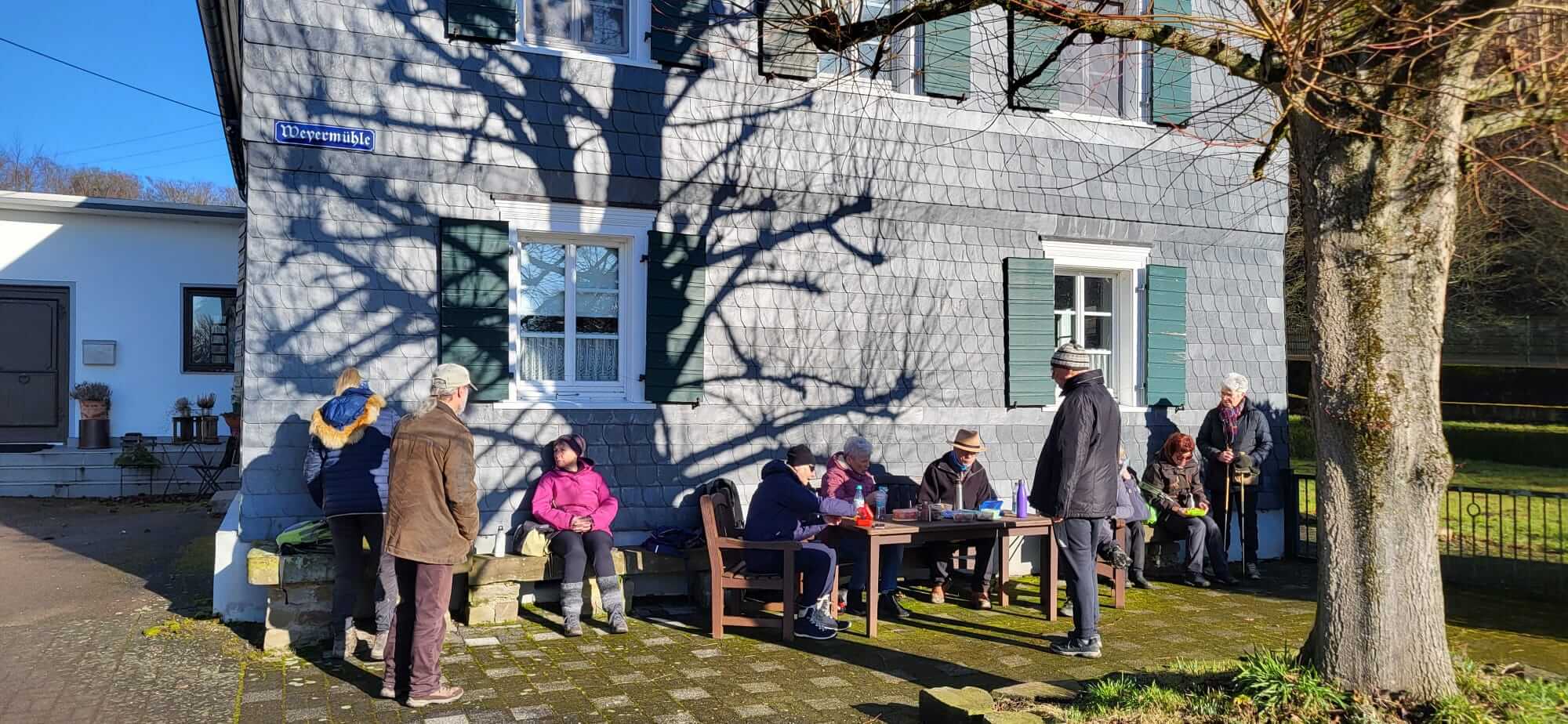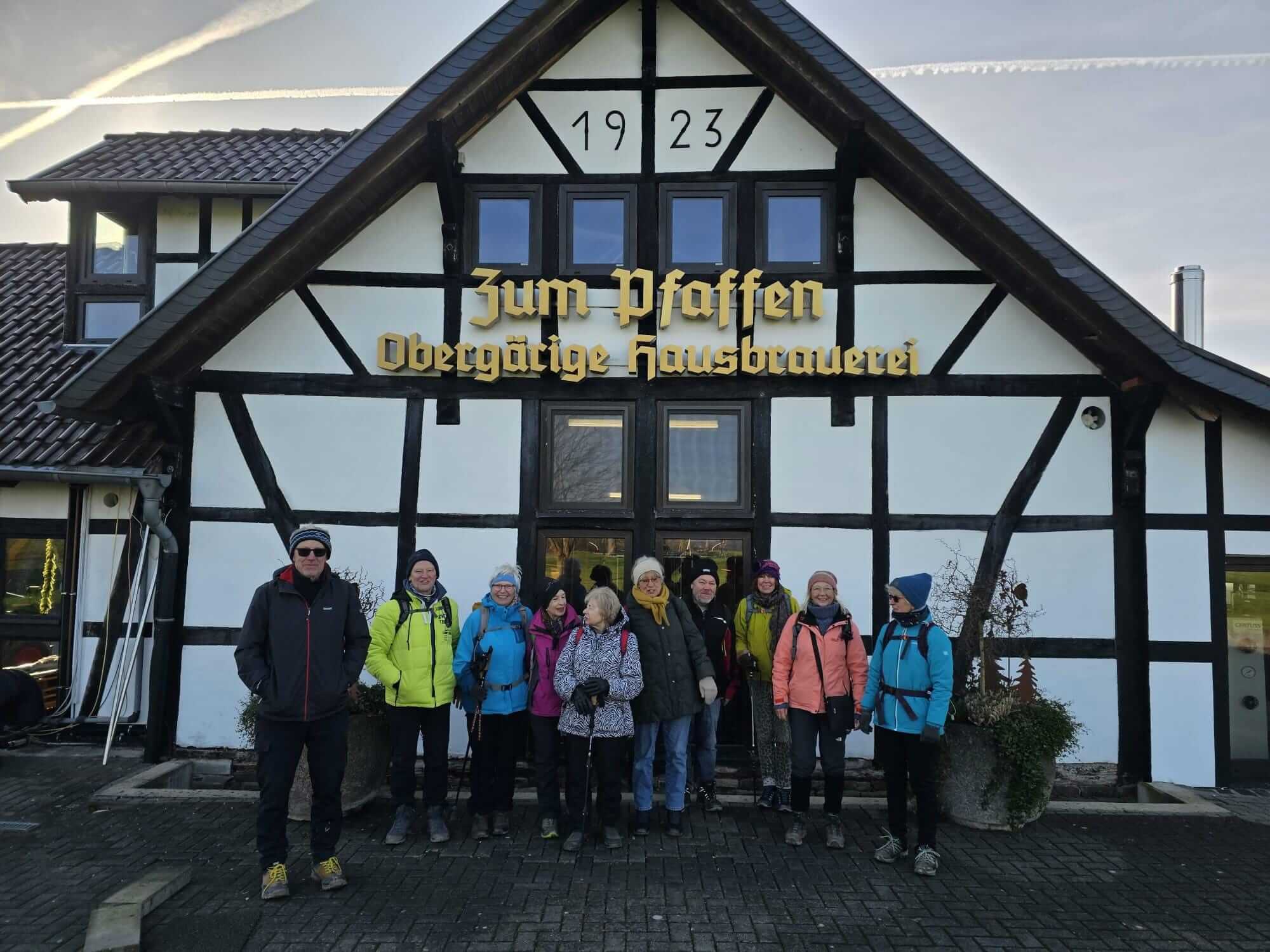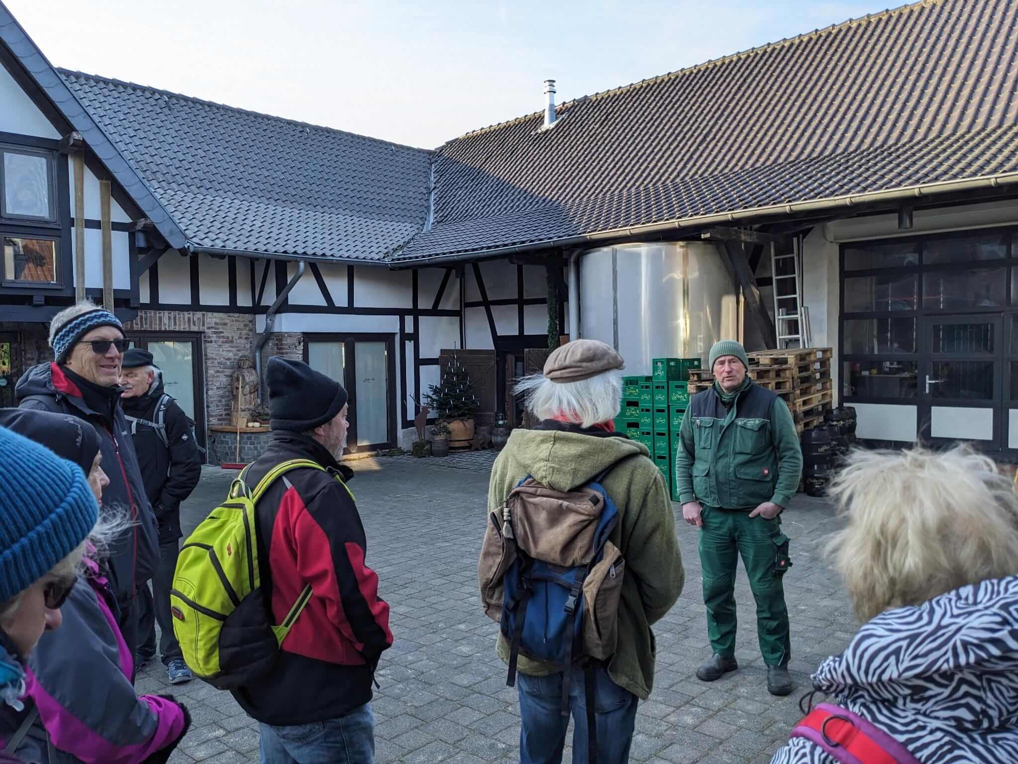 An einem sonnigen Wintermorgen bei frostigen 0 Grad brachen wir (13 Wanderfreude) von Wahlscheid zur Zweitäler-Wanderung durch das malerische Aggertal und das idyllische Gamersbachtal auf. Von Wahlscheid führte uns der Weg zunächst über die Höhen nach Klasberg. Dort wurden wir von Braumeister Max Päffgen in seiner schönen Brauerei herzlich empfangen.