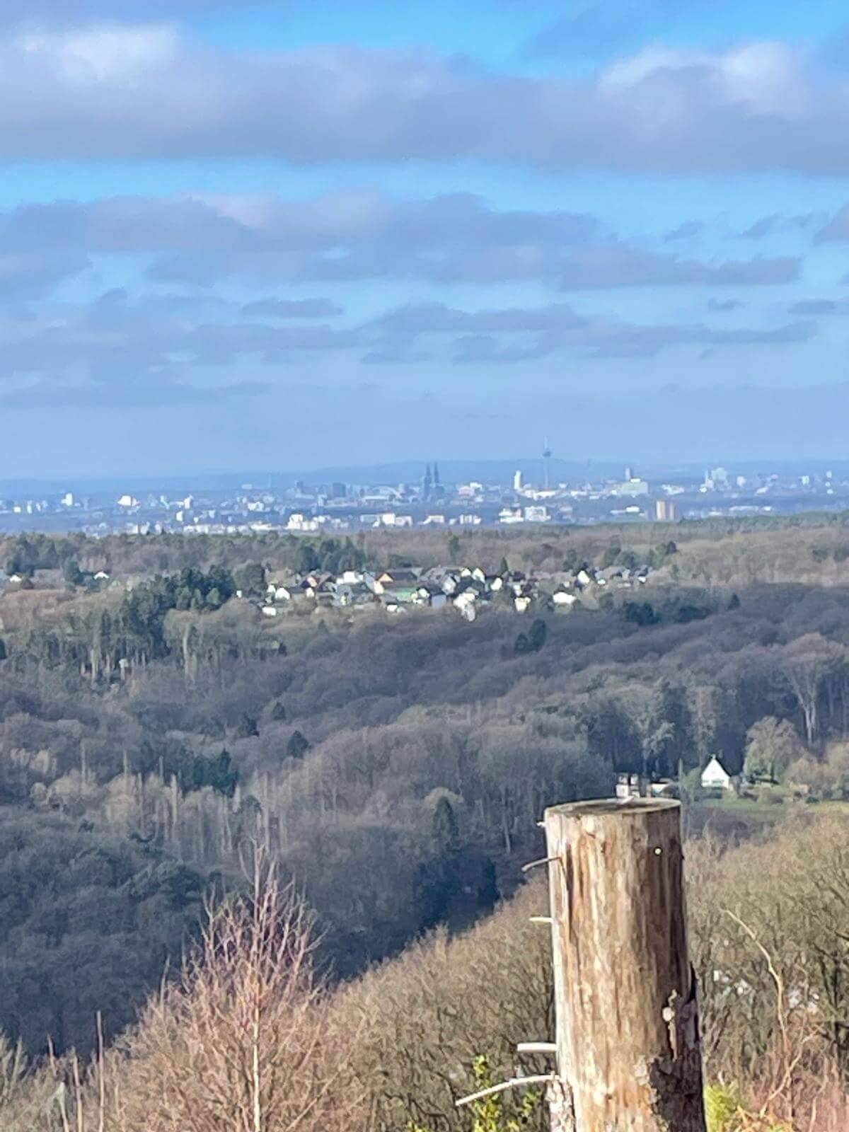 Bei strahlend schönem Wetter starteten wir unsere Wanderung in Biesfeld. Nach dem zunächst steilen Anstieg hinauf zum Sportplatz Biesfeld wurden wir mit einer herrlichen Aussicht in Richtung Köln belohnt. Über wunderschöne Waldwege ging es weiter, begleitet von lockerem Geplauder und bester Stimmung.