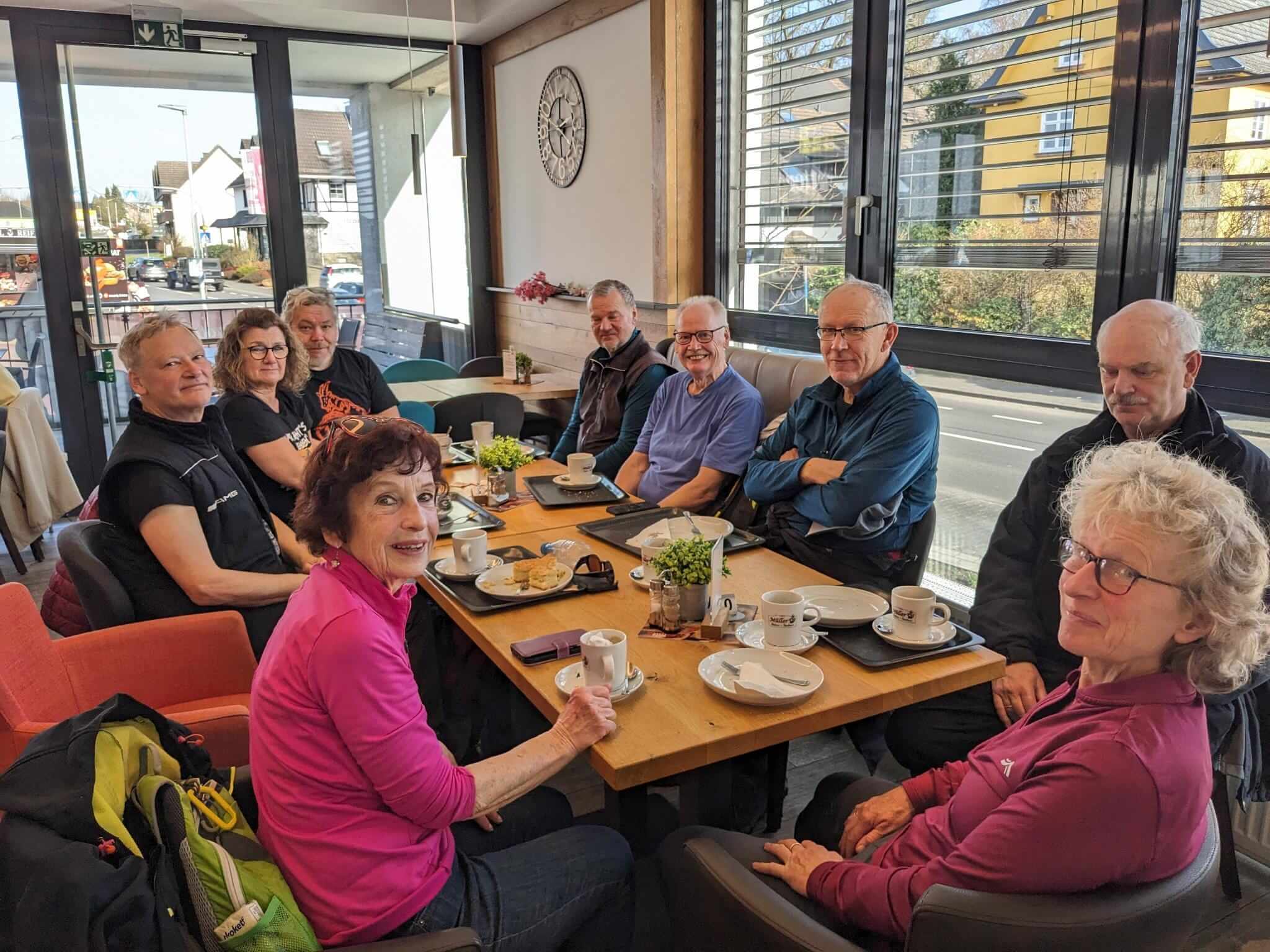 Zurück in Seelscheid lud ein Café zum gemütlichen Verweilen ein – begleitet von einem letzten schönen Spruch, den Markus uns vorlas „Gemeinsam wandern heißt, die Landschaft mit den Augen des anderen zu sehen und die Seele baumeln zu lassen.“