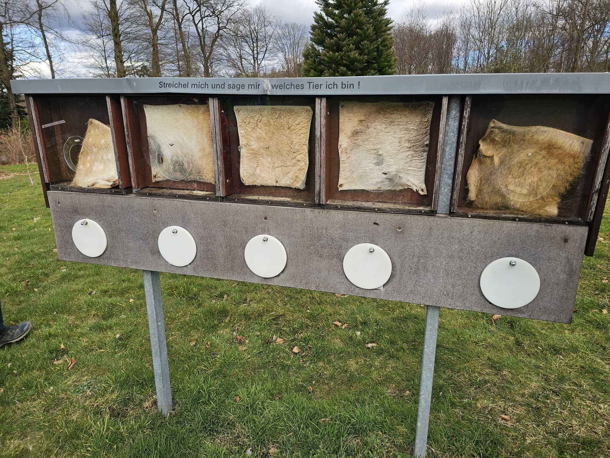 In Thier finden wir Schutz vor dem eisigen Wind und genießen unsere Rucksack Verpflegung. Eine Ausstellung mit Fellen zum Anfassen fasziniert und ist zugleich lehrreich.